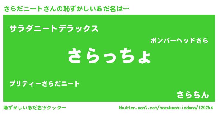 | 料理風あだ名 | 『さらだニートのカルパッチョ風』 |