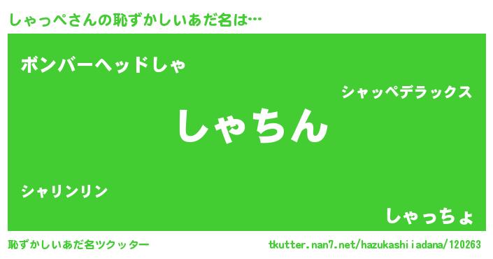 | ヘコむあだ名 | 『しゃっぺ(笑)』『つくし』 |