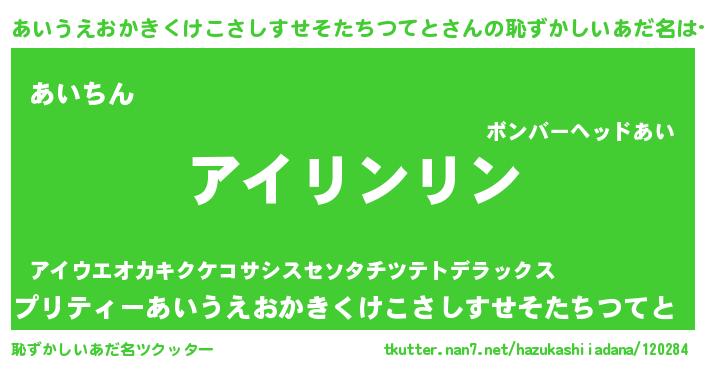 | 意味不明あだ名 | 『とにかく怪しいあいうえおかきくけこさしすせそたちつてと』 |