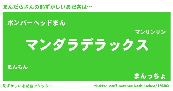 | 女子向けラノベタイトル風あだ名 | 『闇のまんだら』『まんだら伯爵の花嫁』 |