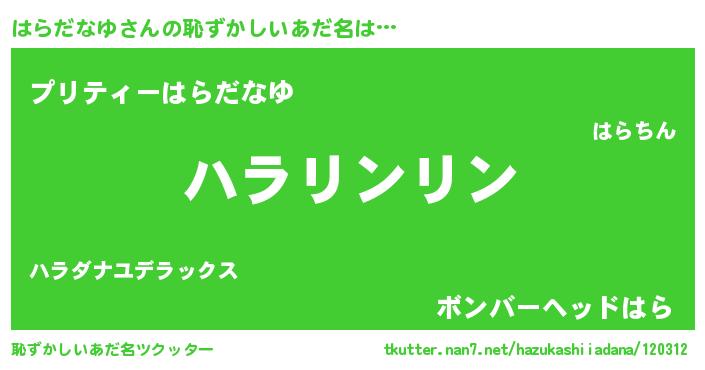| 意味不明あだ名 | 『とにかく怪しいはらだなゆ』 |