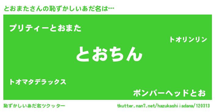 | ヘコむあだ名 | 『とおまた(笑)』『とおふぇ~』 |