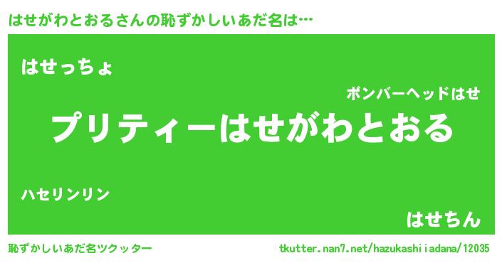 | ポケモン風あだ名 | 『ハセチュウ』『ハセガダネ』 |
