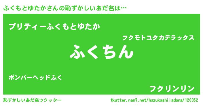 | ヘコむあだ名 | 『ふくもとゆたか(笑)』『ふくにー』 |