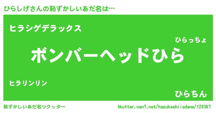 | ヘコむあだ名 | 『ひらしげ(笑)』『豆乳』『ひらっぺ』 |