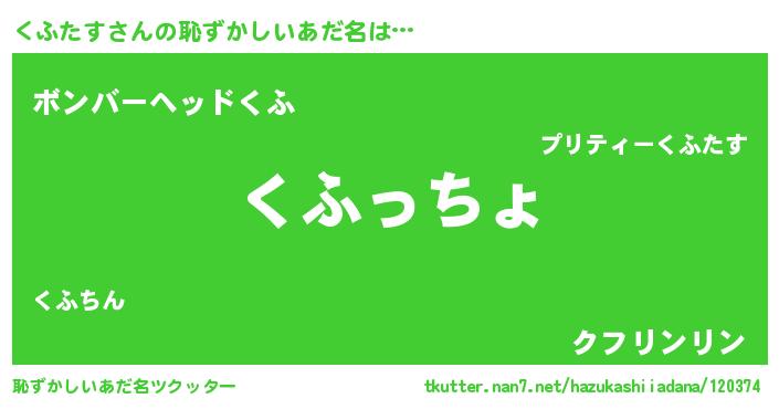 | ヘコむあだ名 | 『つくし』『くふお』『くふにー』 |