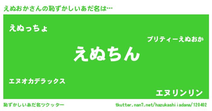 | ヒーロー風カッコイイあだ名 | 『ネオエヌオカ』『ウルトラえぬおかマン』 |