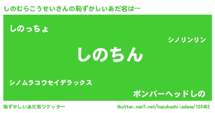 | 意味不明あだ名 | 『永久保存しのむらこうせい』 |