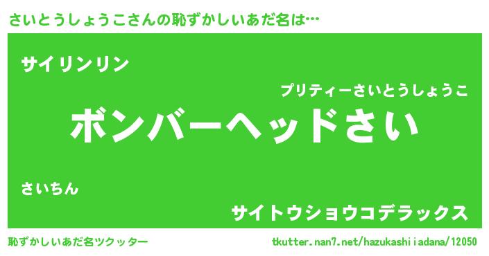 | 意味不明あだ名 | 『住所不定無職さいとうしょうこ(56歳)』 |