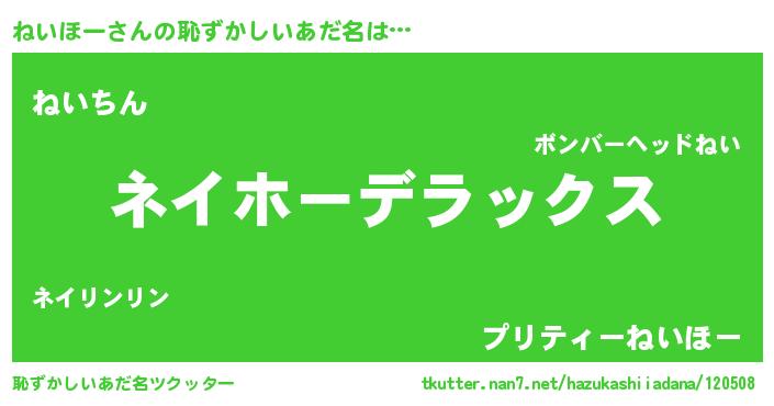 | ヒーロー風カッコイイあだ名 | 『最強戦士ネイホー』『ネオネイホー』 |