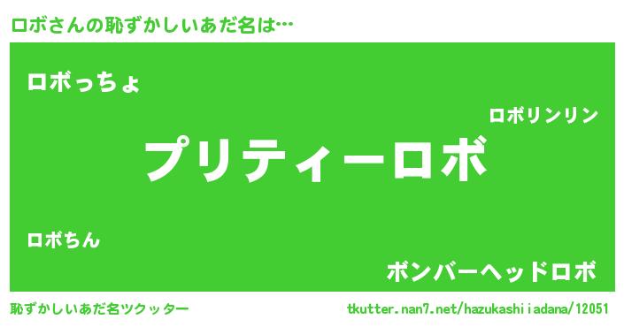 | ヘコむあだ名 | 『ロボにゅー』『なまこ酢』『ロボを』 |