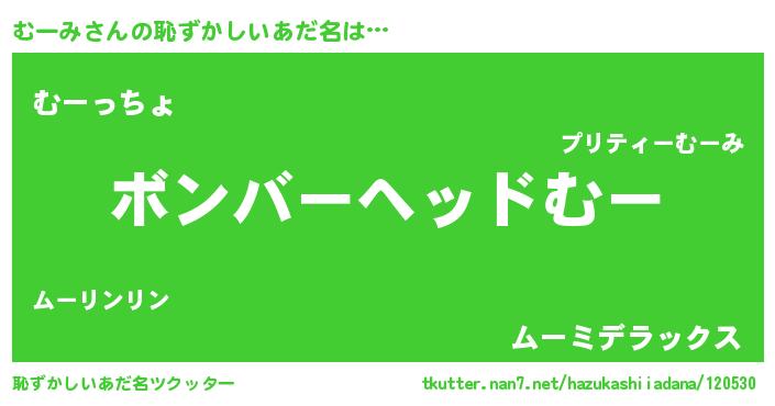 | 意味不明あだ名 | 『眠気覚ましガムむーみ味』『自称むーみ』 |