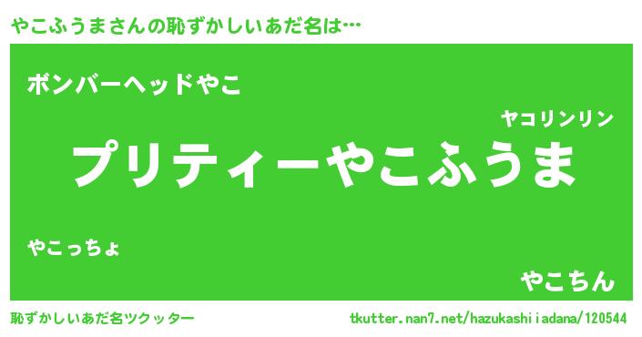 | ヘコむあだ名 | 『やこふぇ~』『やこふうま(笑)』 |