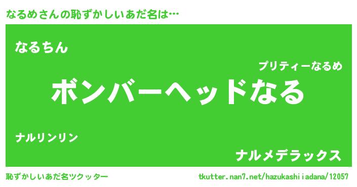 | 意味不明あだ名 | 『住所不定無職なるめ(93歳)』『自称なるめ』 |