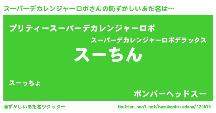 | 胡散臭い通販商品みたいなあだ名 | 『前代未聞の健康食品…その名も「スーパーデカレンジャーロボ」』 |