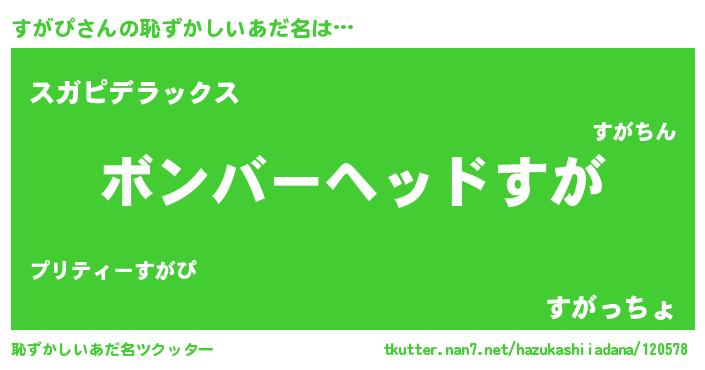 | 女子向けラノベタイトル風あだ名 | 『死神すがぴの再婚』『闇のすがぴ』 |