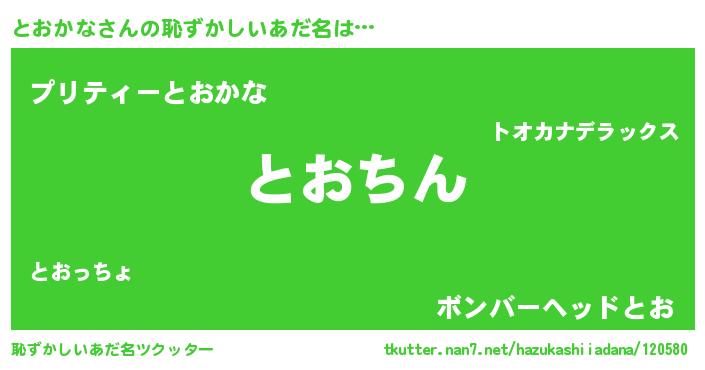 | ヒーロー風カッコイイあだ名 | 『ネオトオカナ』『スーパートオカナ』 |