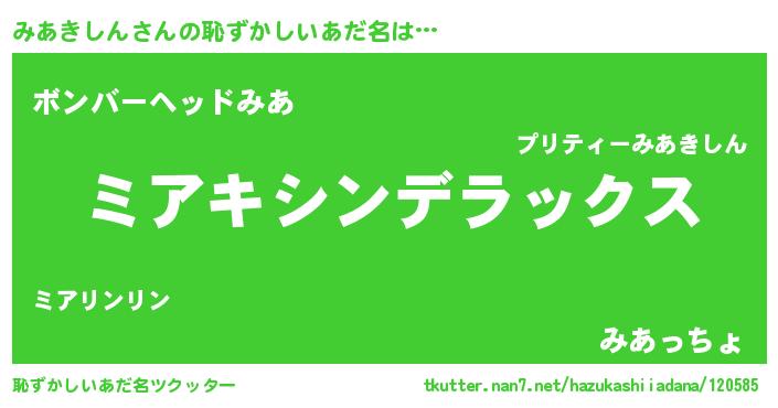 | ヒーロー風カッコイイあだ名 | 『仮面ミアダー』『超時空戦士ミアキシン』 |