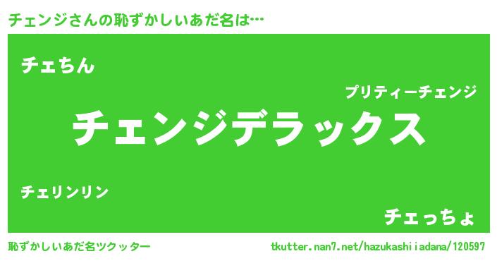 | 意味不明あだ名 | 『自称チェンジ』『永久保存チェンジ』 |