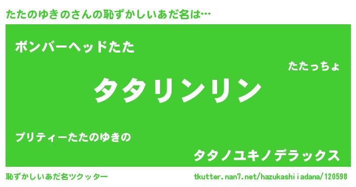 | 男性向けラノベタイトル風あだ名 | 『たたのゆきのの嫁は女の子じゃないと思った?』 |