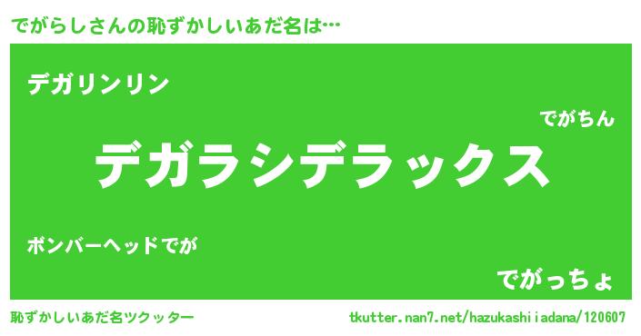 | 男性向けラノベタイトル風あだ名 | 『デガラシスレイヤー』 |