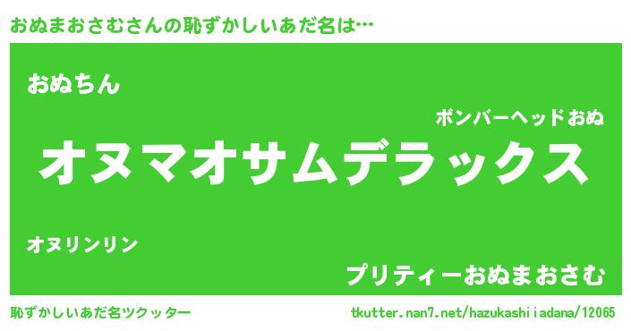 | 男性向けラノベタイトル風あだ名 | 『Re:おぬまおさむから始める異世界生活』 |