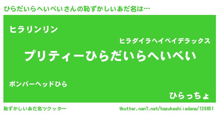 | 意味不明あだ名 | 『ペロリンひらだいらへいべい』 |