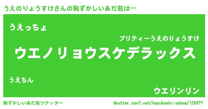 | 意味不明あだ名 | 『たけのこ科うえのりょうすけ属』 |