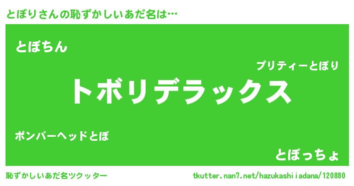 | ポケモン風あだ名 | 『トボセウス』『ゼニトボ』 |