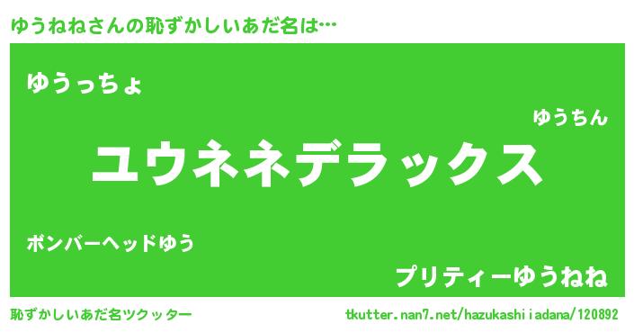 | ヒーロー風カッコイイあだ名 | 『最強戦士ユウネネ』『スーパーユウネネ』 |