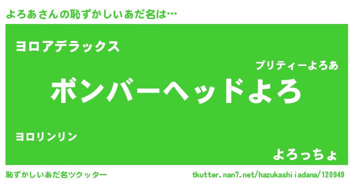 | 欧米人風あだ名 | 『アンジェラ・よろあ』『ダニエルよろあ』 |