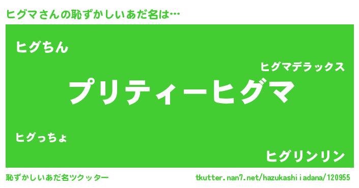 | ヘコむあだ名 | 『ヒグにゅー』『ヒグマ(震え声)』 |