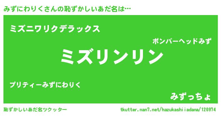 | 意味不明あだ名 | 『とにかく怪しいみずにわりく』 |