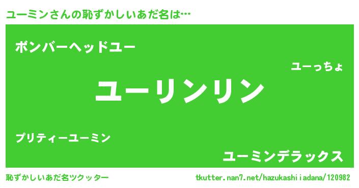 | 男性向けラノベタイトル風あだ名 | 『ユーミンの嫁は女の子じゃないと思った?』 |