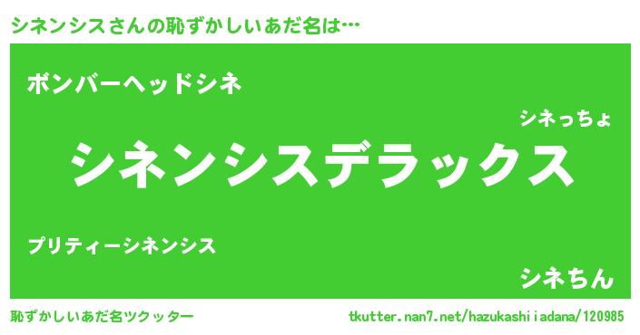 | 男性向けラノベタイトル風あだ名 | 『Re:シネンシスから始める異世界生活』 |