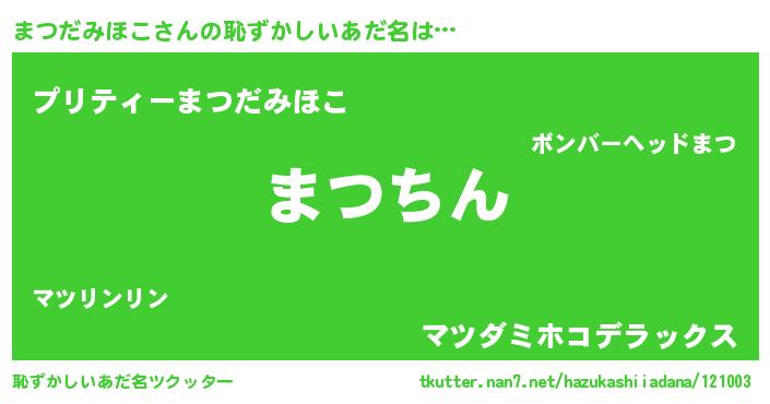 | ヘコむあだ名 | 『まつだみほこ(笑)』『まつっふぃ~』 |