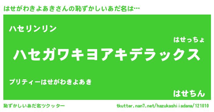 | 意味不明あだ名 | 『自称はせがわきよあき』 |