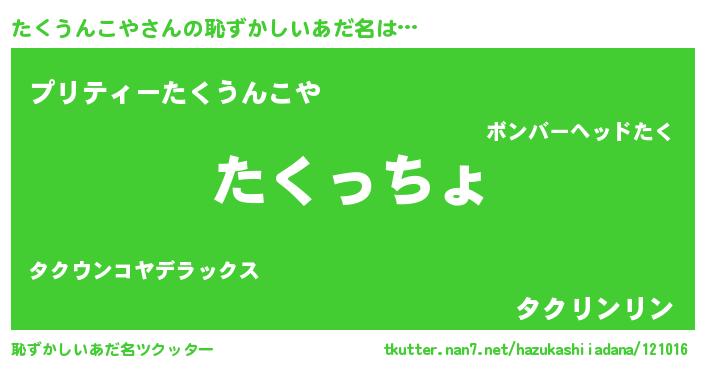| 男性向けラノベタイトル風あだ名 | 『やはりたくうんこやの青春ラブコメはまちがっている 』 |
