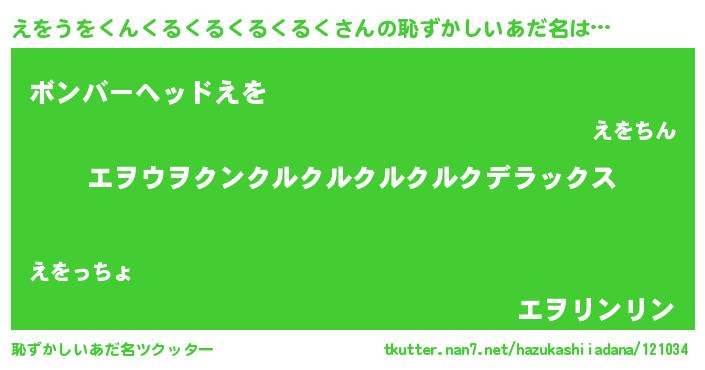 | 意味不明あだ名 | 『自称えをうをくんくるくるくるくるく』 |