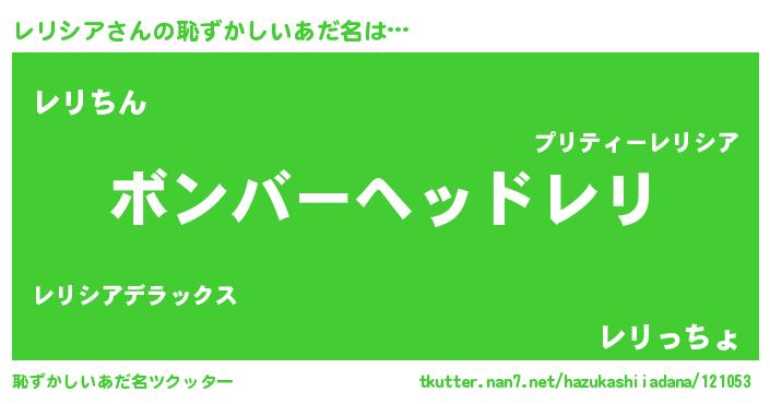 | ヘコむあだ名 | 『レリシア(爆)』『牛乳』『レリっ子』 |