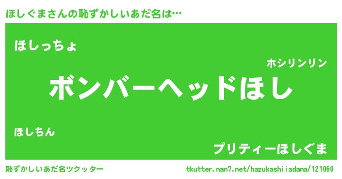 | ヒーロー風カッコイイあだ名 | 『天空の使者ほしぐま』『仮面ホシダー』 |