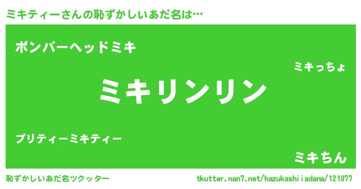 | ヒーロー風カッコイイあだ名 | 『銀牙騎士ミキ』『正義の使者ミキティー』 |