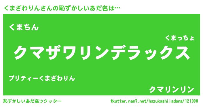 | 意味不明あだ名 | 『自称くまざわりん』 |