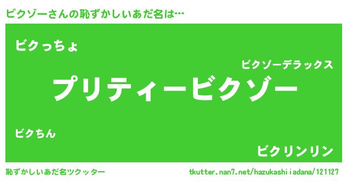 | 男性向けラノベタイトル風あだ名 | 『ビクゾーの憂鬱』 |