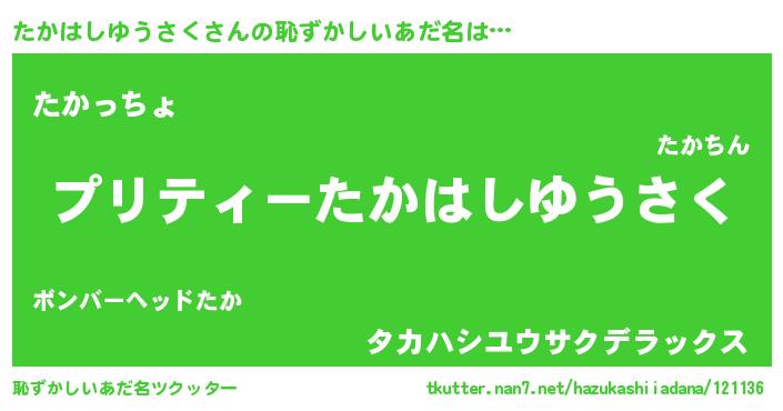| 料理風あだ名 | 『たかはしゆうさくごはん』 |