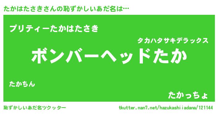 | ヘコむあだ名 | 『たかもー』『なまこ酢』『たかお』 |