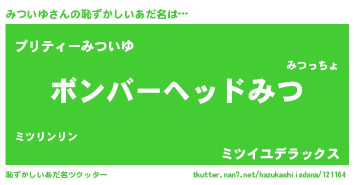 | ヒーロー風カッコイイあだ名 | 『仮面ミツダー』『愛の使者みついゆ』 |