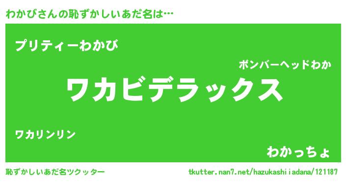 | 男性向けラノベタイトル風あだ名 | 『Re:わかびから始める異世界生活』 |