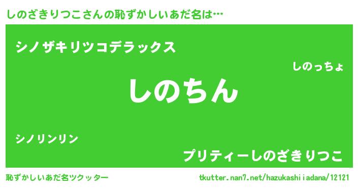 | 男性向けラノベタイトル風あだ名 | 『転生したらしのざきりつこだった件』 |