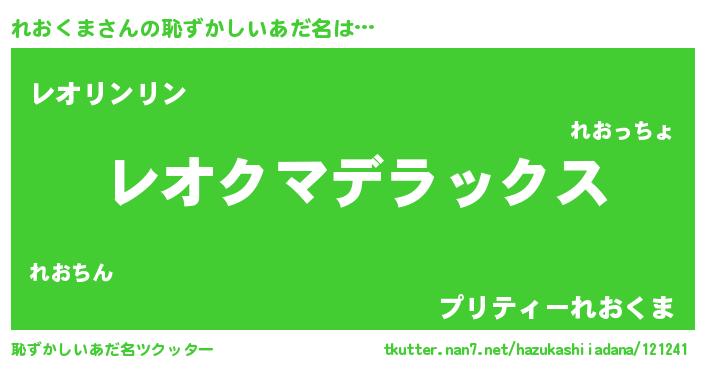 | 男性向けラノベタイトル風あだ名 | 『緋弾のレオクマ』 |